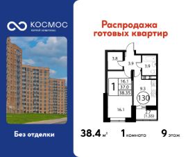 Продаётся 1-комнатная квартира в сданном доме (Корпус 1), срок сдачи: 2-кв. 2025, общей площадью 38.35 кв.м., на 9 этаже. ЖК ''Космос'' - новое место для жизни, в котором сочетаются отличная экология, удобное расположение, креативные решения архитектуры и функциональные планировки квартир. Строительство жилого комплекса ведётся при проектном финансировании Сбербанка. ЖК ''Космос'' расположен в микрорайоне Авиационный (Домодедово), в 24 километрах от МКАД по Каширскому шоссе.Проект будет состоять из 7 корпусов высотой 12 этажей. На первых этажах домов запланировано открытие необходимых для жителей объектов торговой и социальной инфраструктуры, в том числе магазинов, кафе, медицинского центра. В микрорайоне Авиационный также есть всё необходимое для комфортной жизни - здесь находятся детские сады, школы, высшие учебные заведения, магазины, поликлиники и медицинские центры, спортивный клуб, ТЦ ''Торговый город''. Помимо этого, жители ЖК ''Космос'' смогут пользоваться развитой инфраструктурой г.о. Домодедово - до него можно добраться за 20 минут на автомобиле или электричке.Одна из особенностей ЖК ''Космос'' - отличное экологическое состояние локации. В 10 минутах ходьбы от комплекса находится благоустроенный парк ''Взлёт'' с красивым прудом Лесным, здесь планируется дальнейшее благоустройство территории. Рядом с ''Космосом'', на площади Гагарина, будут проходить городские мероприятия.Проект отличается удобной транспортной доступностью - до МКАД можно добраться за 20-25 минут. Около жилого комплекса находятся остановки общественного транспорта, в пешей доступности - ж/д станция ''Авиационная'' Павелецкого направления.На придомовой территории ЖК ''Космос'' предусмотрено устройство парковочных мест численностью 544 машино-места, в том числе для маломобильных групп населения.