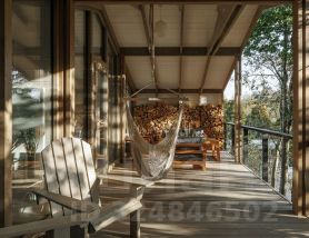 Загородный комплекс из трёх зданий в одном стиле современного деревянного зодчества, выполненный по проекту известного петербургского архитектора, на участке площадью 41 сотка. Комплекс имеет уникальное расположение в небольшом закрытом поселке, рядом с рекой Ока и ее затоном, с полосами дикого и обустроенного пляжа по береговой линии.Домохозяйство подключено к магистральному газу, городскому электроснабжению, канализации и водоснабжению из скважины поселка с чистейшей артезианской водой, подключено к автономному генератору для аварийного электрического питания.Основной дом общей площадью 319 кв.м. имеет 2 этажа, полу-цокольный этаж и отделанный чердак, собран из экологичного оцилиндрованного бревна 220 мм, сосна. Оборудован автономной системой отопления с возможностью удалённо управлять через приложение. Дом полностью меблирован, укомплектован дорогой бытовой техникой и готов к проживанию.Второй дом - велнес ретрит, имеет площадь 291 кв.м. Собран из рубленного бревна 260-340 мм, сосна. Здесь находятся большой спортивный зал с достаточным пространством для настольного тенниса, баня с душевыми, комната отдыха, кухня, бильярд и отдельное помещение с бассейном-спа. Дом также оборудован автономным отоплением с возможностью удалённого управления через приложение, полностью меблирован, укомплектован дорогой бытовой техникой и готов к немедленному использованию.Третий - домик для проживания персонала, имеет площадь 46 кв.м. Также полностью мебелирован и оборудован, включая кухню и санузел и готов к проживанию. Помимо трёх отапливаемых зданий, на участке расположены уютная беседка с зоной для барбекю, навес для парковки двух машин, вольер для содержания собак с просторной утепленной будкой, неотапливаемая постройка с мастерской и помещением для садового оборудования и инвентаря.На участке выполнен ландшафтный дизайн с многолетними кустарниками, деревьями и газоном. Сохранено достаточное количество вековых деревьев смешанного леса. Комплекс находится в окружении лесного массива, в пешей доступности, как от реки, так и от ее затона, к которым проложены широкие прогулочные, обустроенные и природные дорожки. Рядом также модно найти маршруты для катания на квадроциклах, питбайках, зимой на лыжах и снегоходах!