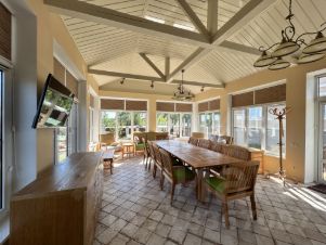 Предлагаем в продажу дом площадью 435 кв. м. Участок 12 соток, на котором помимо дома расположена просторная капитальная беседка с печью и гараж. Дом под охраной и видеонаблюдением. Отопление - газовый котел. Встроенный септик, рассчитанный на проживание 8 человек.Электричество- 30 кВт. А также автономный бензогенератор, который обеспечивает жизнеспособность дома в экстренных случаях. Дом имеет 4 уровня- этажа. 1-й уровень(цокольный этаж) - это спа зона. Включает в себя сауну, санузел, просторный бассейн и место для массажа. 2-й уровень - 1 этаж это помимо прихожей и гардеробной просторная кухня- гостиная, кабинет, санузел3-й уровень - 3 классных красиво отделанных спальни. В главной мастер спальне есть теплый балкон и свой санузел. В каждой спальне гардеробная комната. И на этаже еще один санузел. 4-й уровень - это мансарда. Там оборудована бильярдная и место для отдыха и общения. Дом расположен в деревне Тутыхино, в непосредственной близости от города Ступино. В пешей доступности река Ока и лесные озера. Свежий воздух от соснового леса. Подъезд по трассе М4, везде хорошие дороги, которые чистят и убирают круглогодично. В стоимость также входит ухоженный участок 4 сотки для огородничества. Документы готовы к сделке. Дом в идеальнейшем состоянии. На все вопросы готов ответить по телефону или на просмотре. Планировку и презентацию пришлю по запросу.