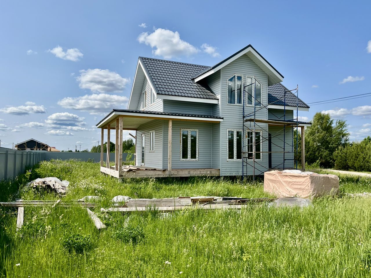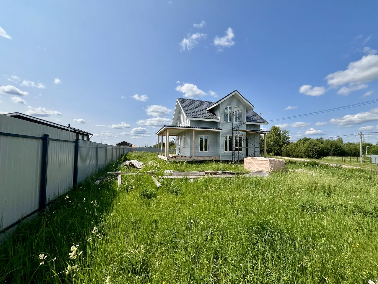 Дом (сэндвич панели) с функциональной и уютной планировкой: просторная гостиная с кухонным блоком, 4 спальни, гардеробная, 2 санузла, крытая терраса 20 м. оборудованы все коммуникации - электричество, водоснабжение, канализация. Газ - по границе участка, подключение по программе ''Мособлгаз'' (бесплатно). Готов теплый контур.