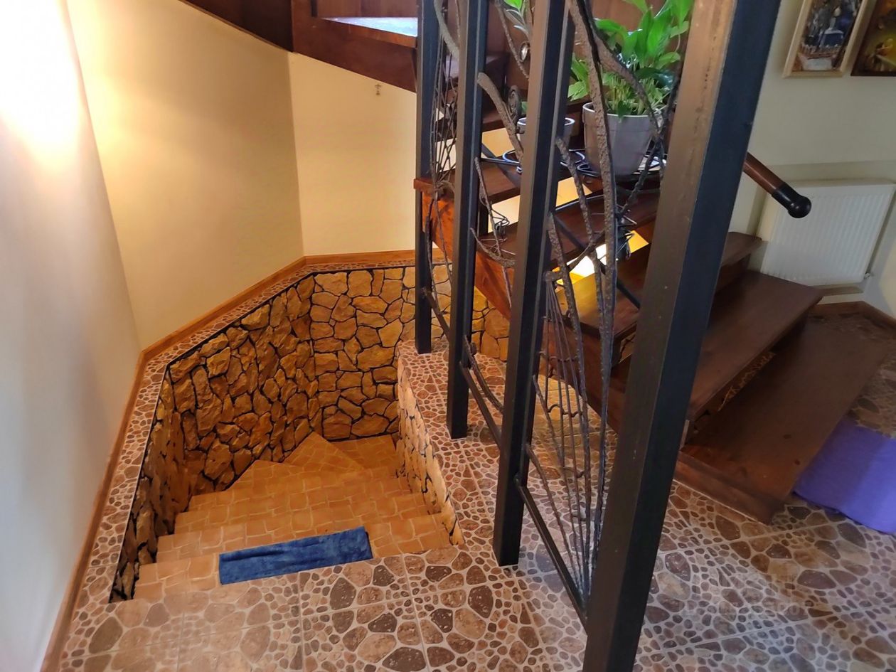 Арт. 100324172 Вдалеке от шумных дорог, в окружении леса уютно расположена деревня Кишкино, где мы хотим предложить вам приобрести просторный загорoдный дом, площадью 262,9 м2, на земельном учacтке 14 cотoк, в 18 км от Москвы по Щелковскому шоссе. Учaстoк pовный, сухой, с плодовыми и лиственными деревьями, ухоженным газоном и выложенными плиткой дорожками. Категория земли Земли Населенных Пунктов, Разрешенное использование Для ведения Личного Подсобного Хозяйства, площадь участка 1401 м2. Дом 2011 года постройки, общая площадь 262,9 кв. м, жилая 128,6 кв. м, из цельного бруса хвойных пород 200х100 мм, утепленный Тепофолом, толщина стен - 450 мм. Внешняя отделка дома в альпийском стиле природным камнем. Дом 4 уровневый: Цокольный этаж: 68,8 кв.