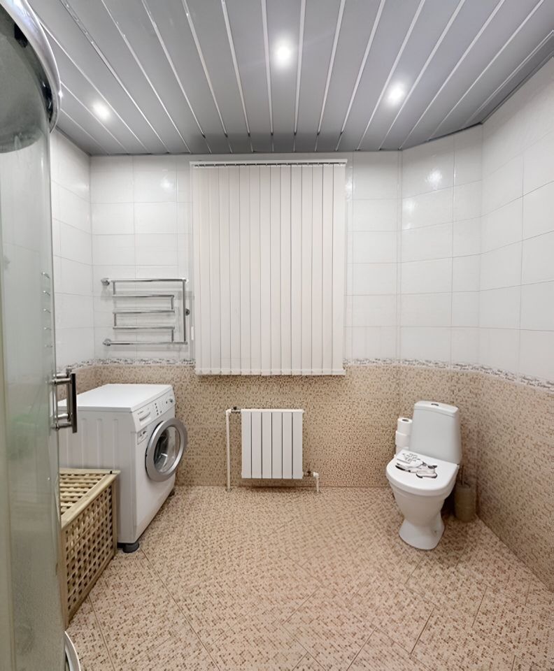 На 1-м этаже все полы теплые (водяной обогрев). Потолки в доме натяжные, высота около 3 м.
