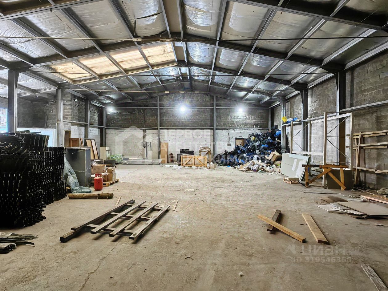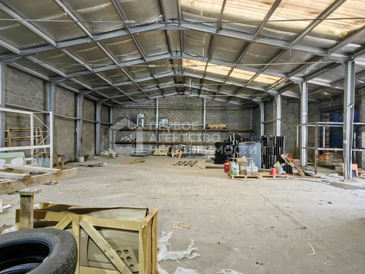 Здание имеет двое ворот высотой 3,75 м., потолки 5м, можно использовать прилегающую территорию. Электричество - 380в, 25 кВт.