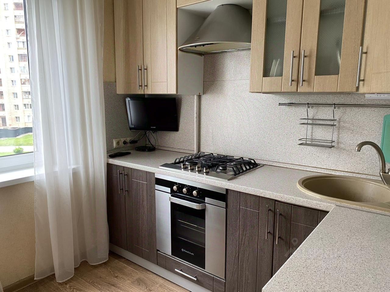 В квартире есть вся необходимая мебель, телевизор, стиральная машина, холодильник, посуда)