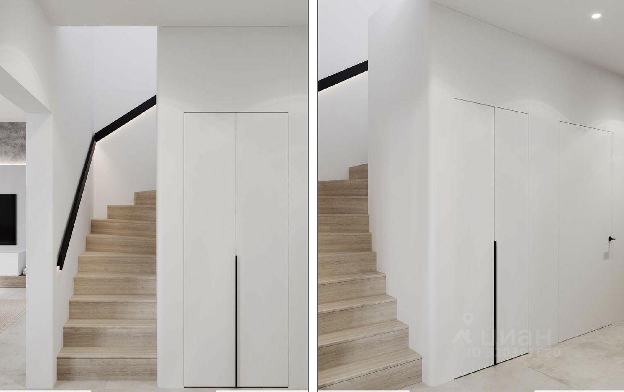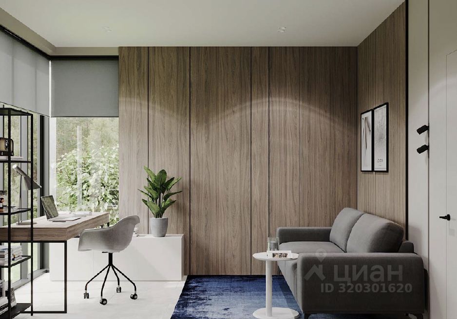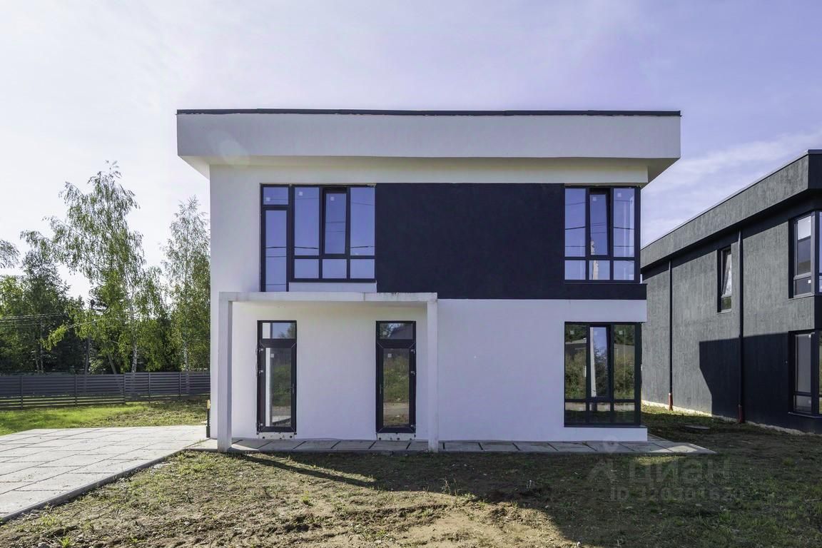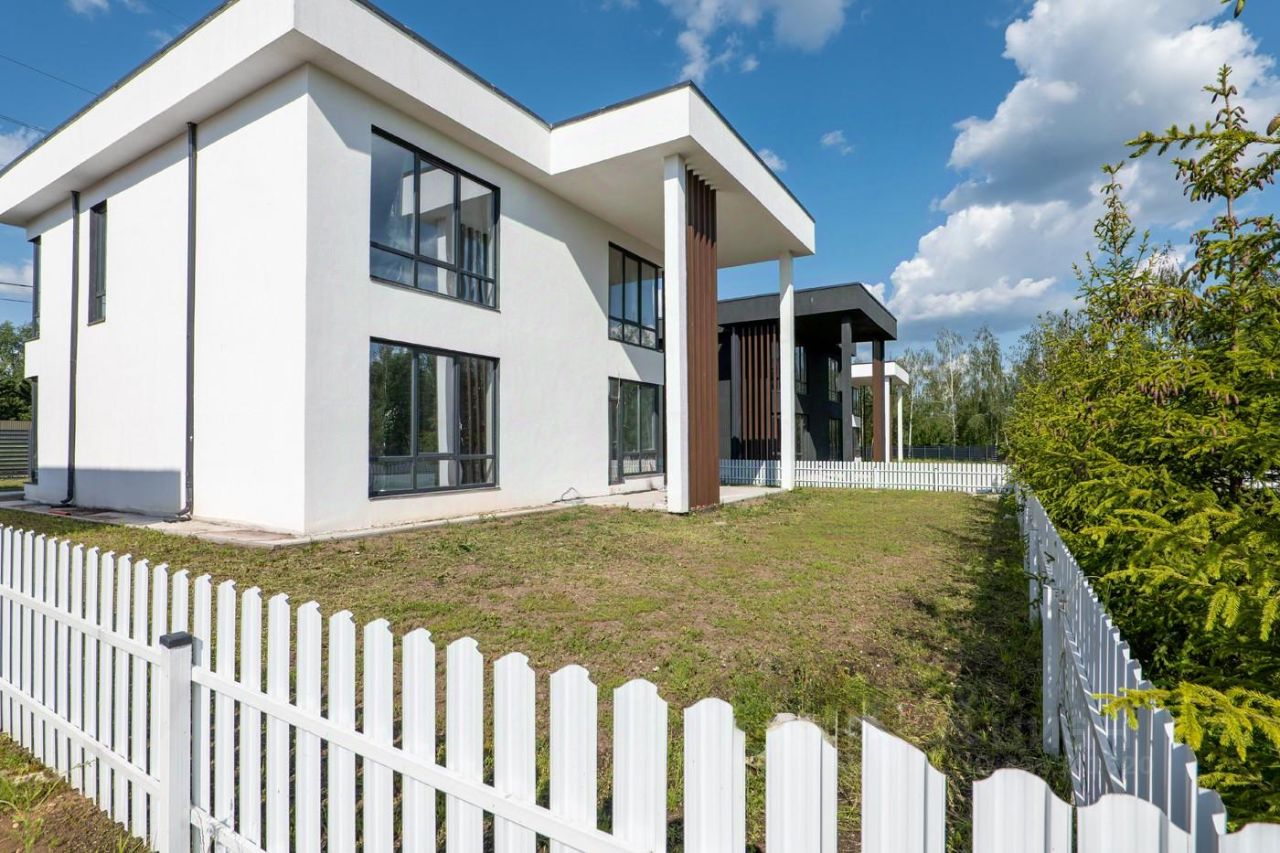 Экстерьер дома выполнен из сочетания декоративной штукатурки с вставками из лиственницы в светлых и темных тонах. Коттедж продается без отделки. Внутри возведены межкомнатные перегородки и сделана монолитная лестница. Газовая котельная оборудована под ключ. Все коммуникации заведены в дом.