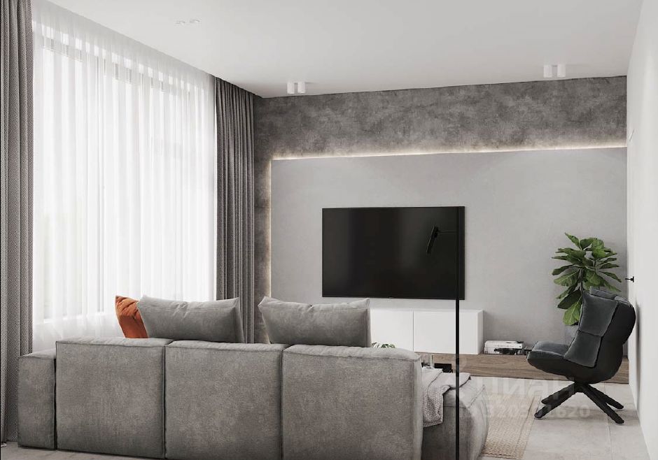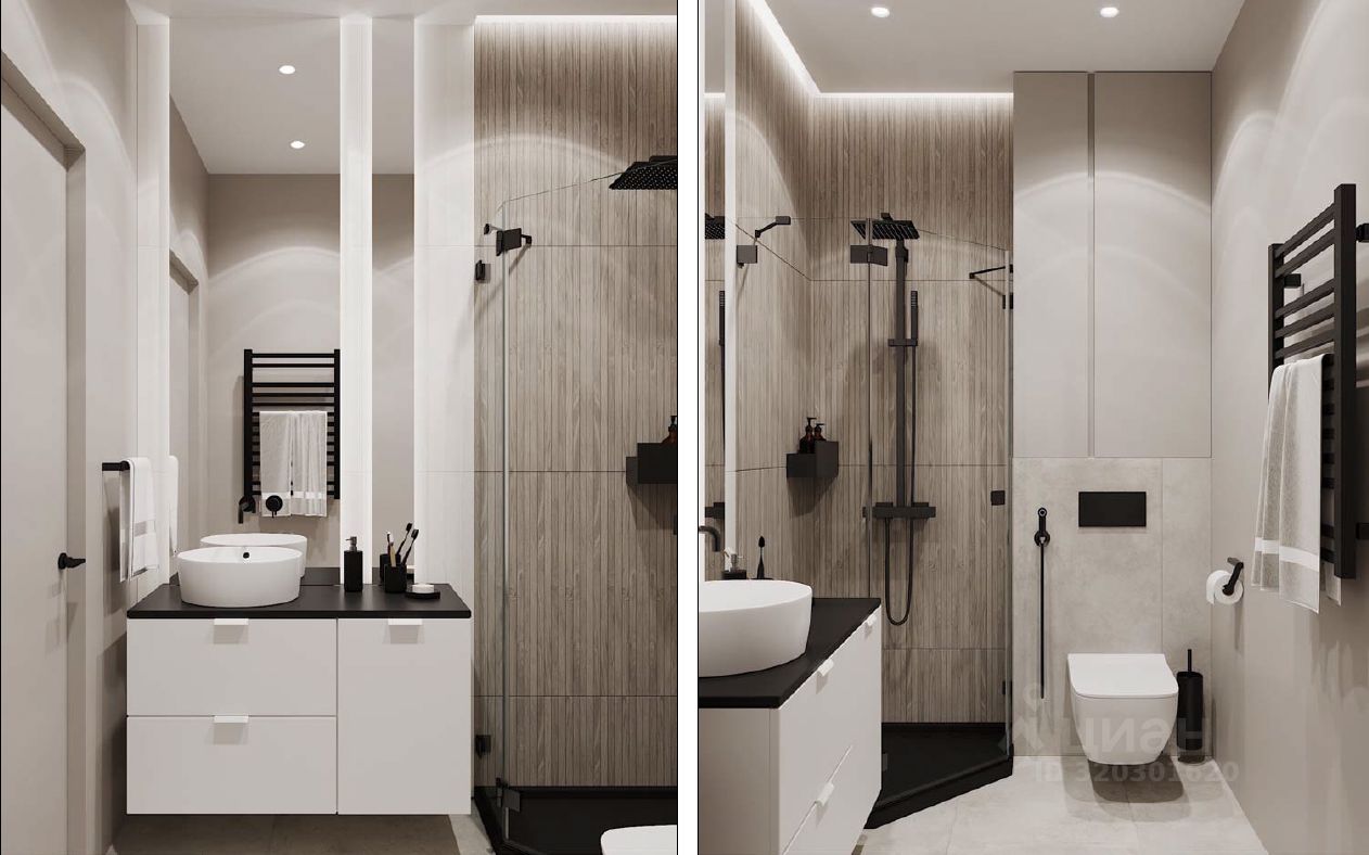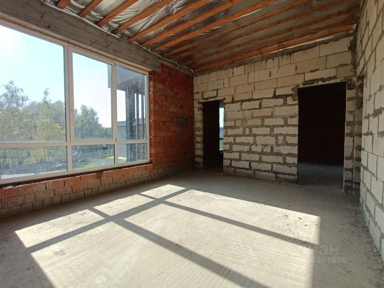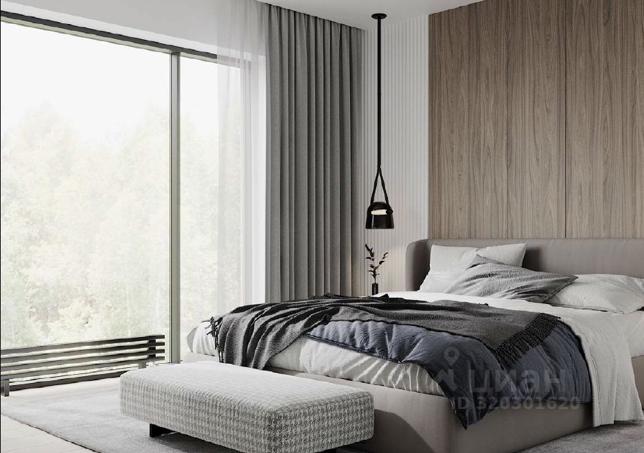 Экстерьер дома выполнен из сочетания декоративной штукатурки с вставками из лиственницы в светлых и темных тонах. Коттедж продается без отделки. Внутри возведены межкомнатные перегородки и сделана монолитная лестница. Газовая котельная оборудована под ключ. Все коммуникации заведены в дом.