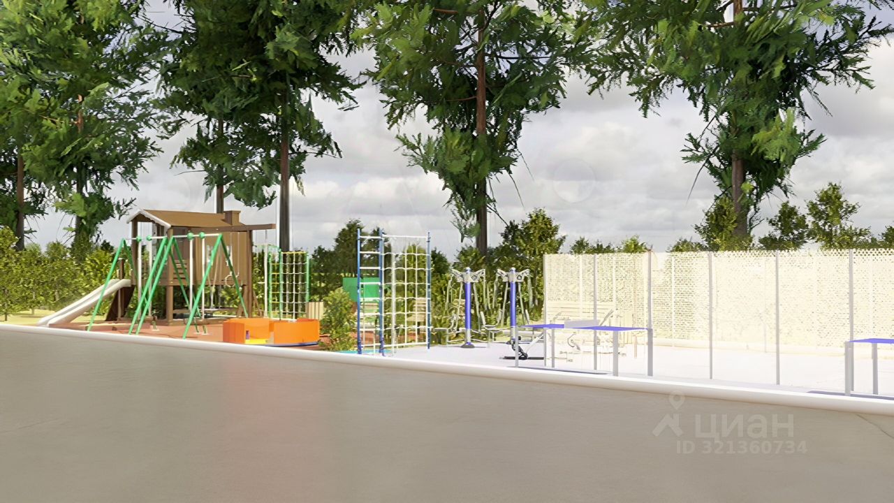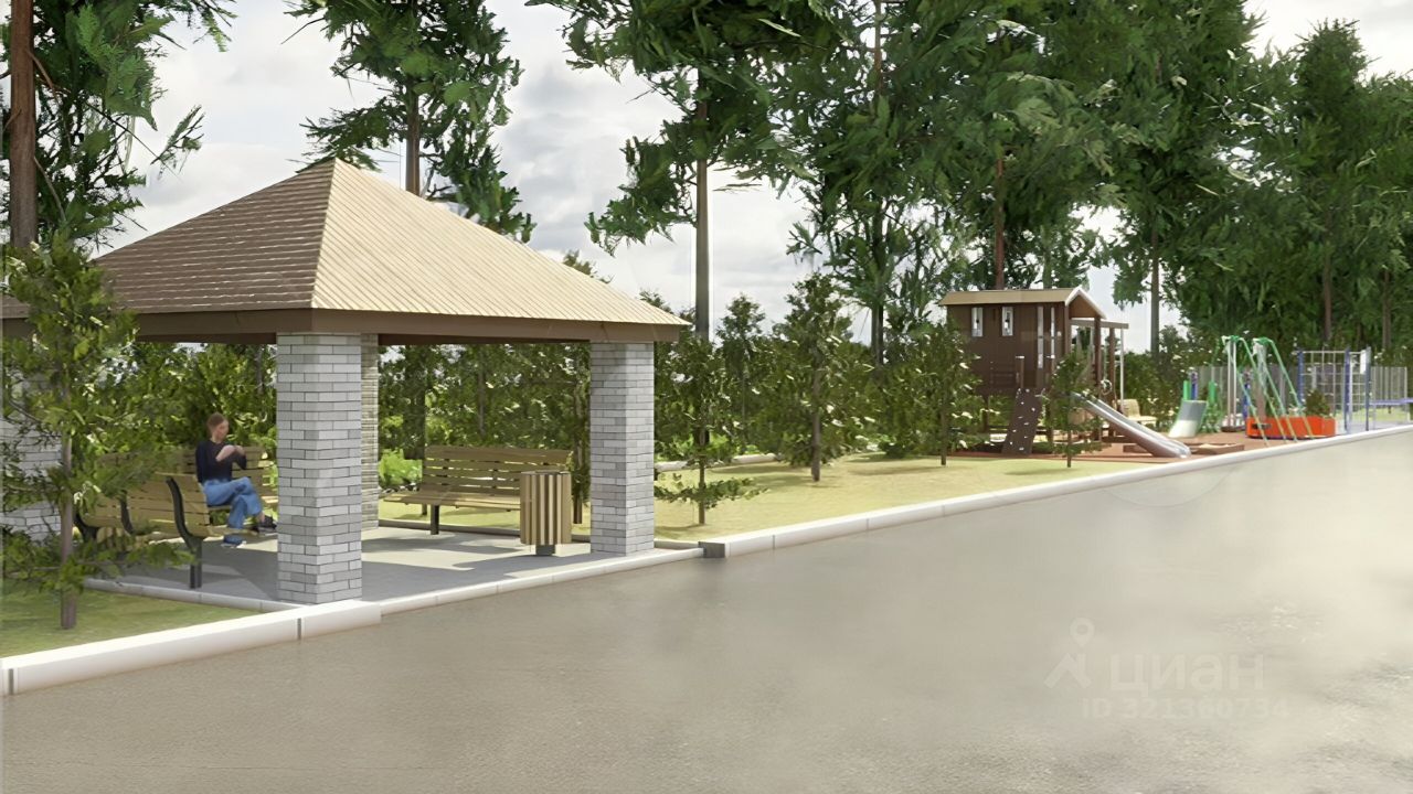 На территории беседка, детская площадка, плодовый сад, забор по периметру + озеленение в виде сосновых насаждений, тротуары и др.