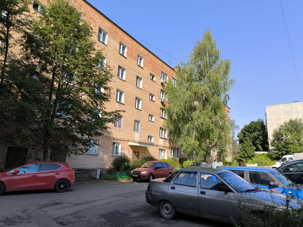 Кирпичный теплый дом, зеленая территория.