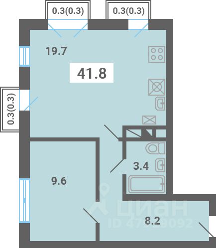 Общая площадь41,8 м2