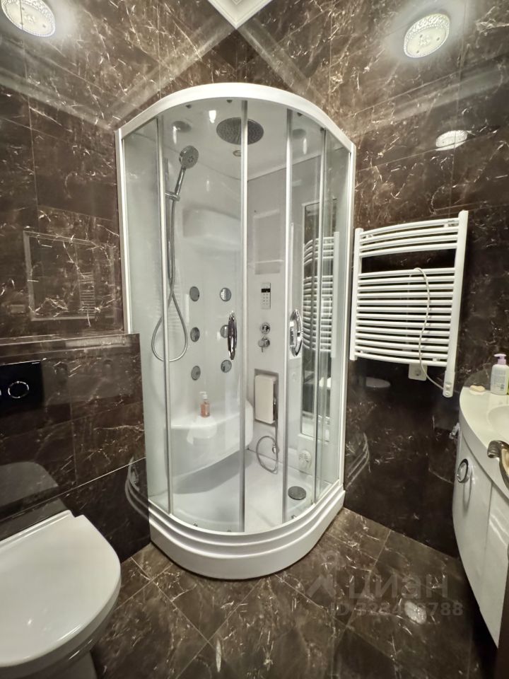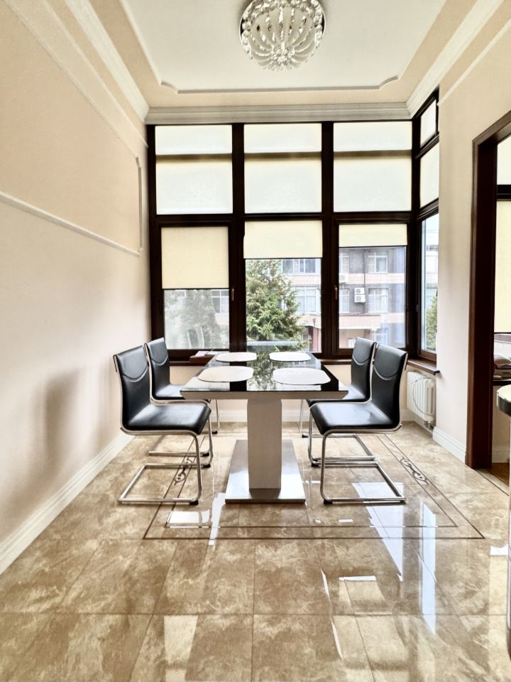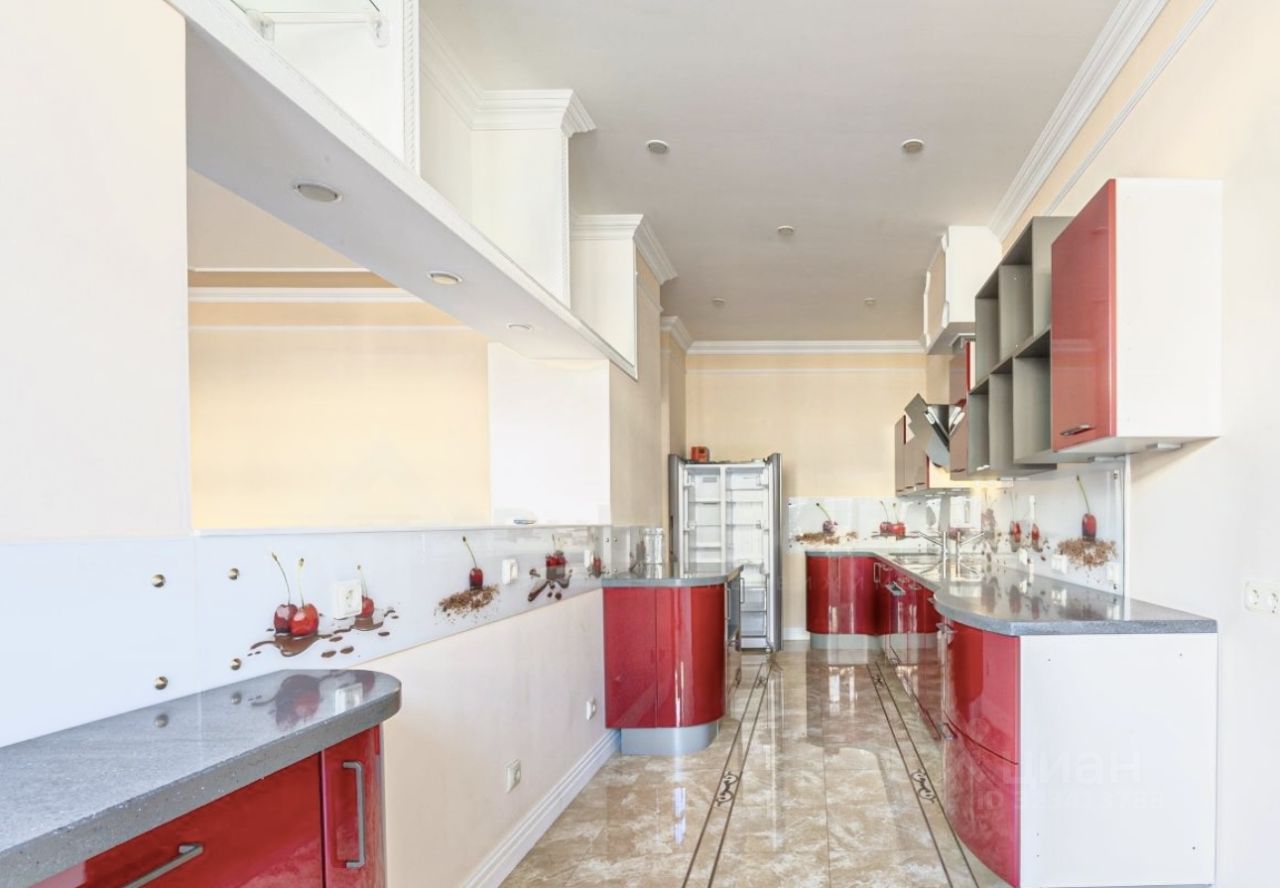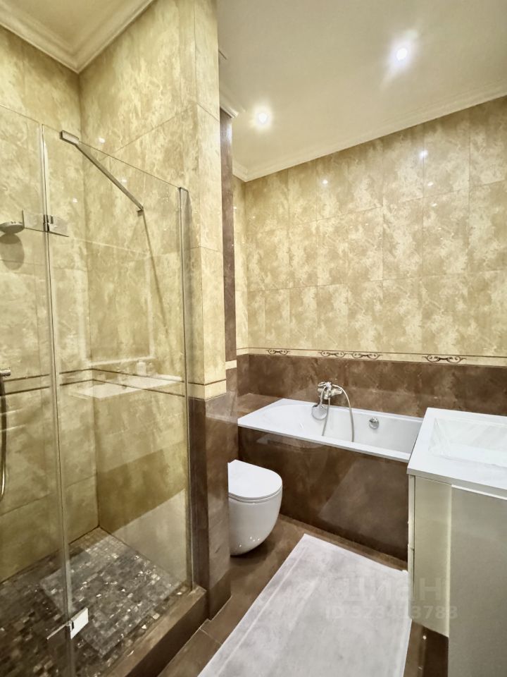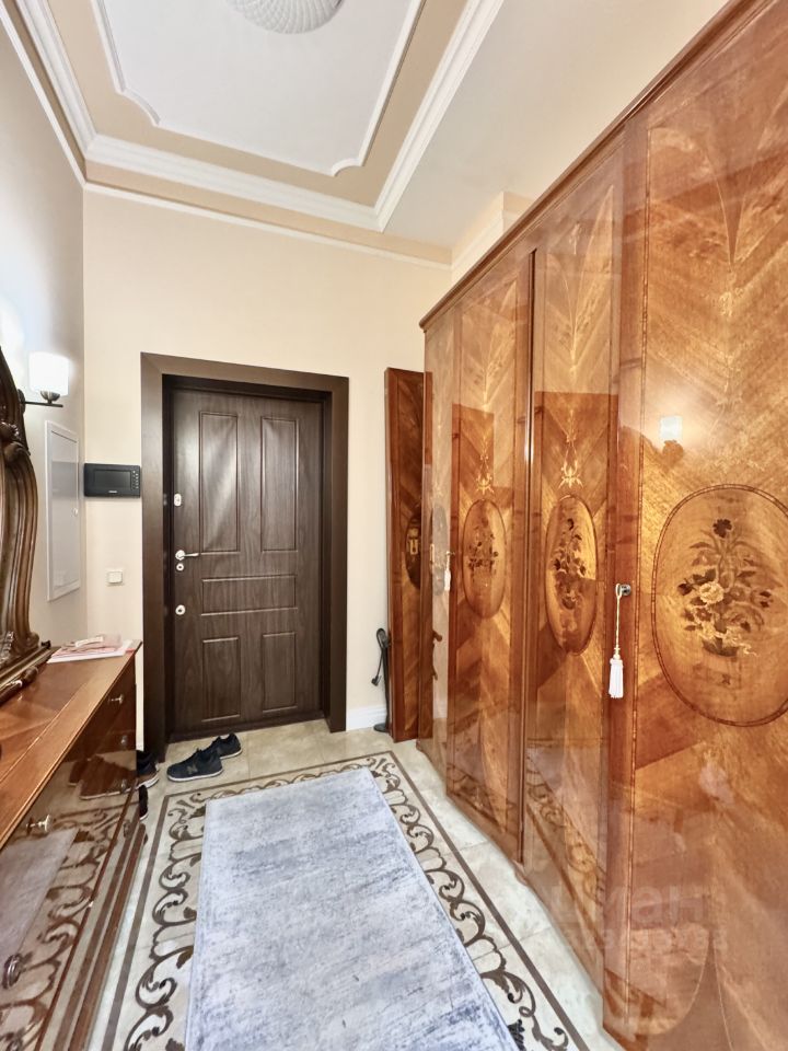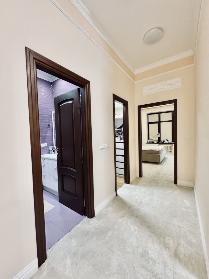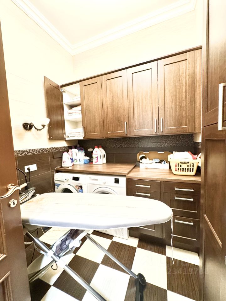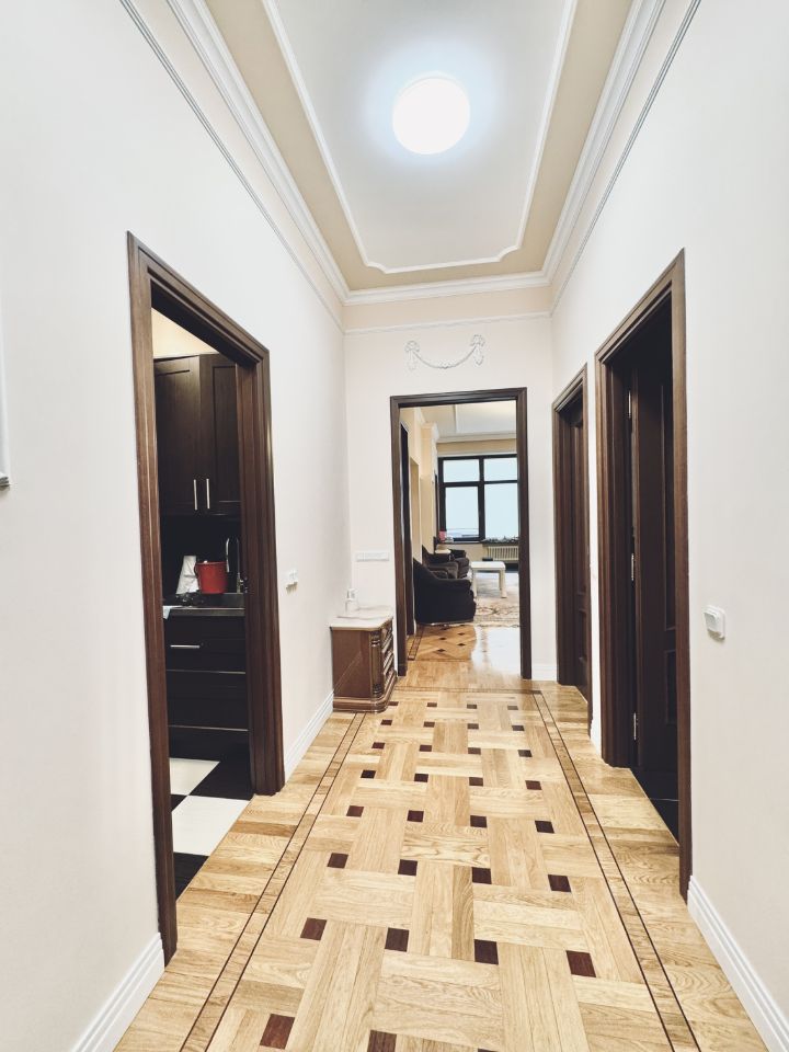 Квартира состоит из кухни с зоной столовой, гостиной комнаты, 3-х изолированных спален , каждая из которых со своим санузлом, 3-х гардеробных комнат, постирочной, гостевого санузла и просторной прихожей.