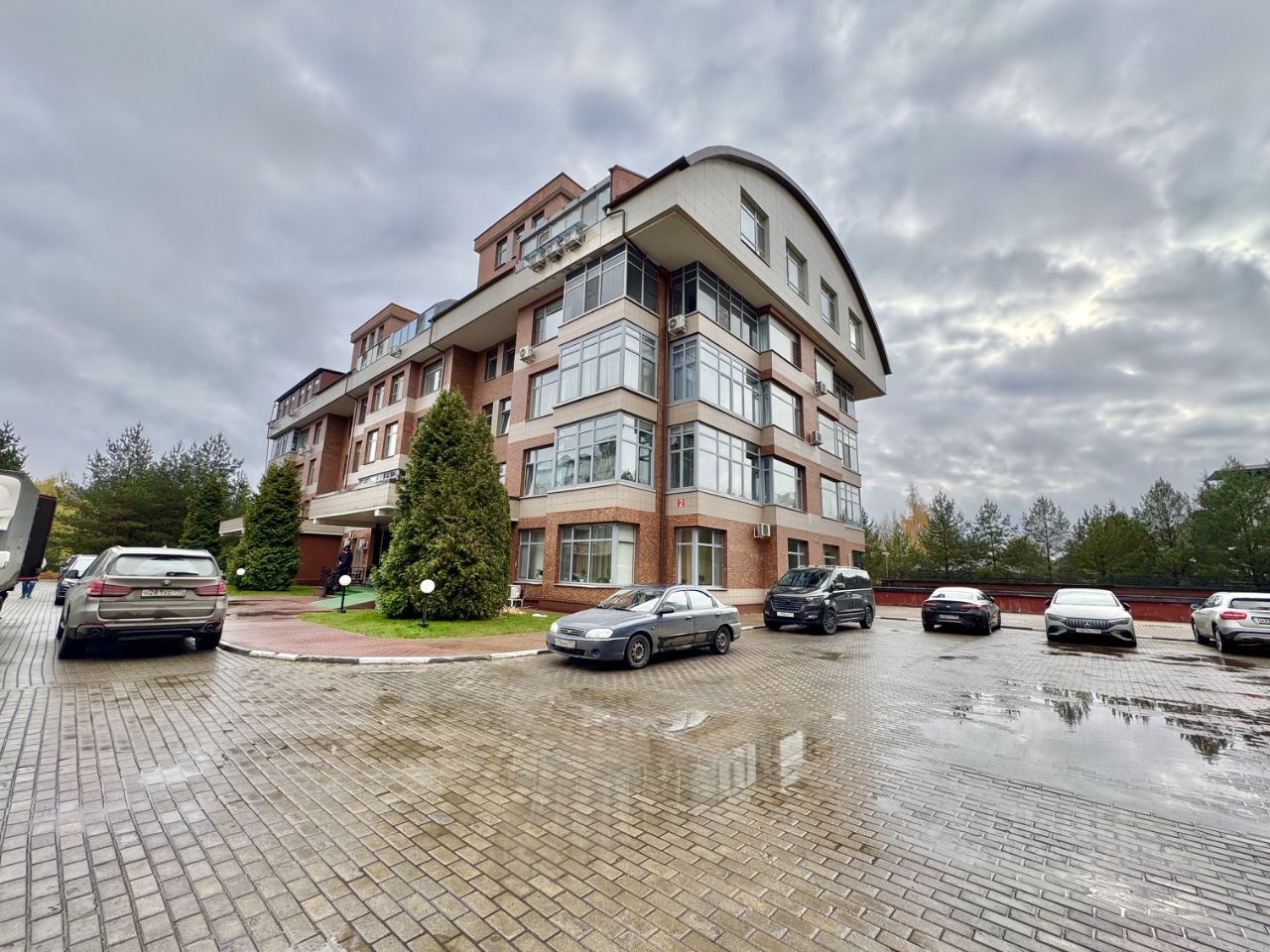Поселок огорожен и строго охраняется. В доме есть подземный паркинг.