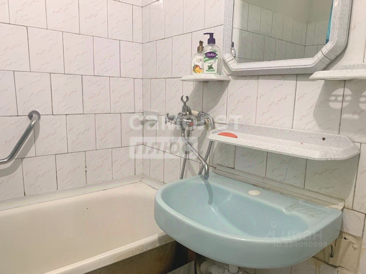 Ванная комната просторная и полностью функциональная. Высокие потолки добавляют квартире ощущения простора и воздуха, а большие окна наполняют комнаты естественным светом.
