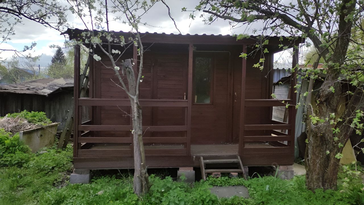 Дом деревянный щитовой двухэтажный на блочном фундаменте с просторной верандой, сверху обшит сайдингом. Площадь дома 56 кв.м. Потолок 2,15 м. На первом этаже находится кухня, прихожая и две комнаты, на втором этаже одна большая комната. Дом в основном предназначен для проживания в весенне-осенний период, но стены с утеплителем минватой, можно отапливать обогревателями в более холодное время или в дальнейшем сделать отопление. На данный момент в основном дом использовался для пребывания с мая по октябрь, зимой и ранней весной были разовые недолгосрочные поездки на несколько дней. В последние 5 лет в доме никто не живет, приезжаем косить и смотрим за его состоянием.