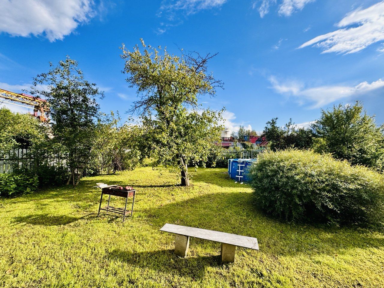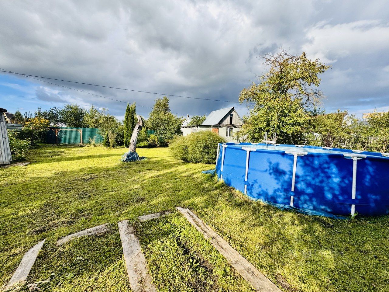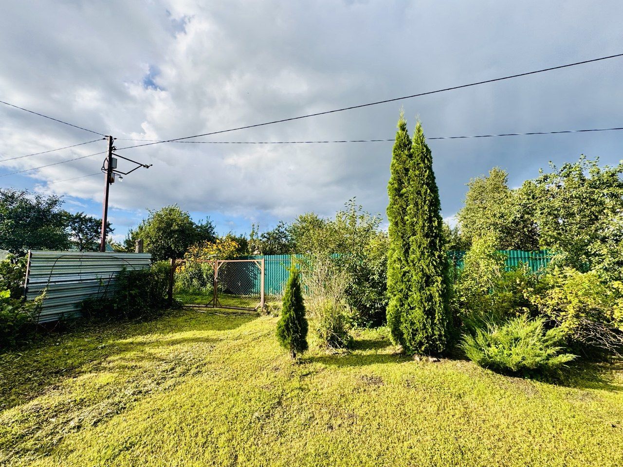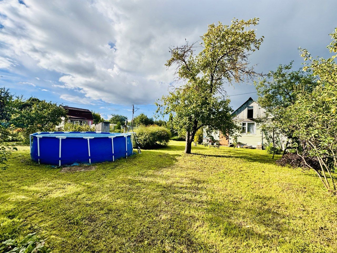 На участке имеется небольшой летний домик Плодовые деревья и кустарники (яблоня, вишня, слива, смородина, малина, крыжовник).