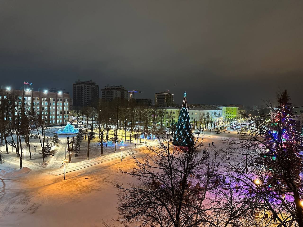 Два балкона и просторные окна с видом на центральную площадь города,