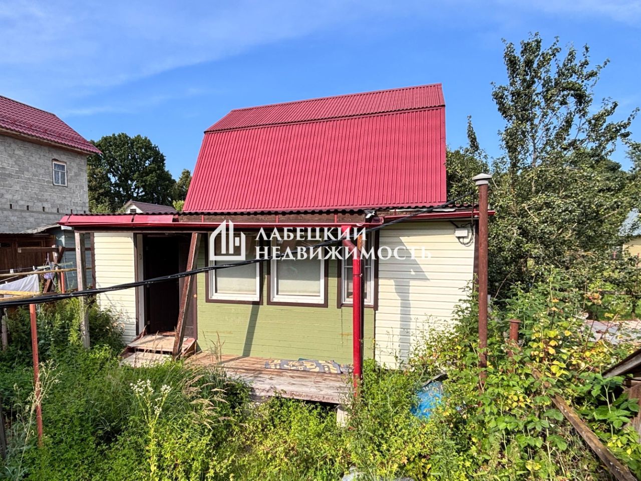 • 1/2 Главного дома 48.5 м2, построен из бруса. • Металлическая кровля.