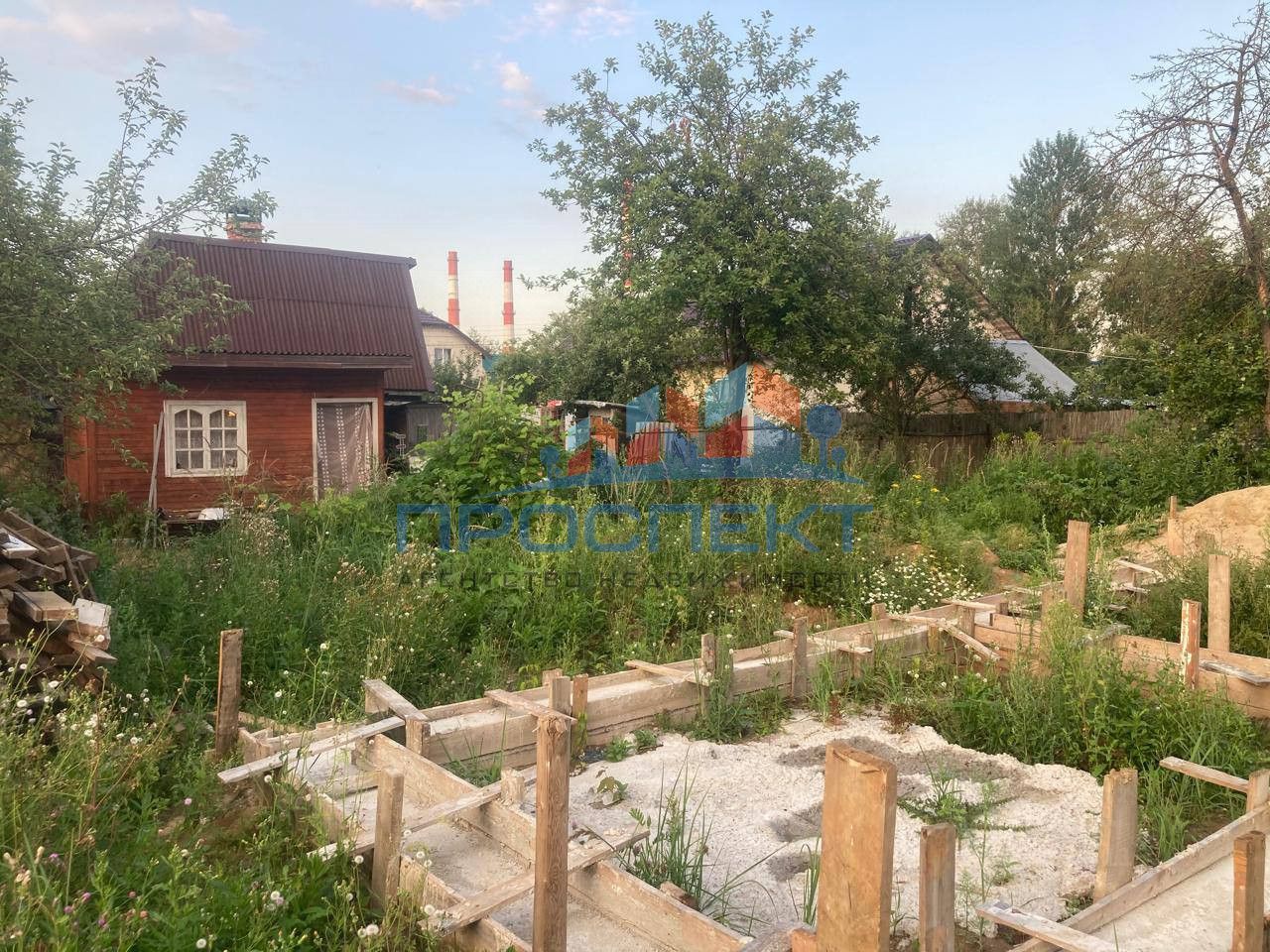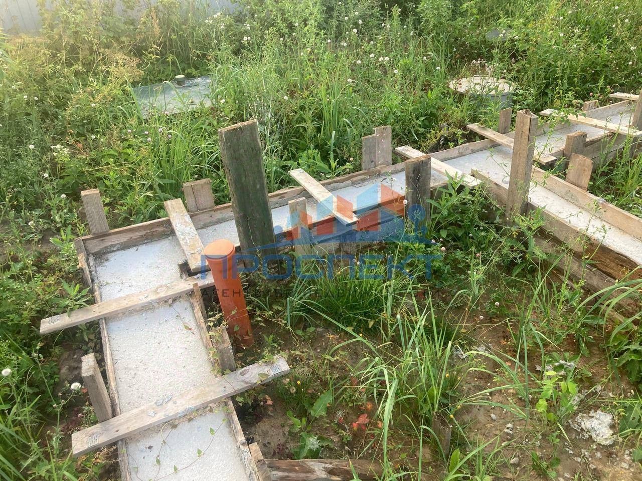 На участке уже есть забор с откатными воротами и заложен фундамент под будущее строительство (можно демонтировать по необходимости).